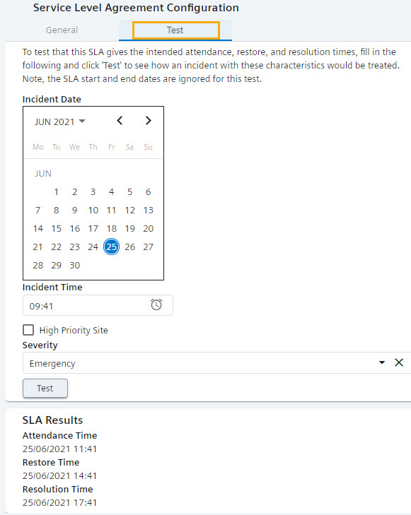 Within the detail there is an option (separate tab) to test the SLA by entering times and dates for an imaginary Incident and seeing how the result would be treated.