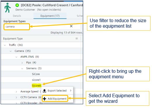 The equipment wizard is also used to replace individual equipment items or groups of equipment of the same type. |