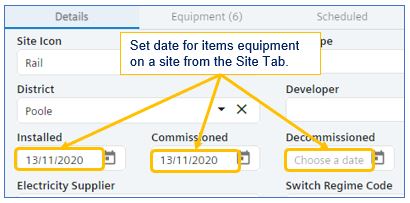 From the Site Tab, enter a date to be applied to all site items that do not currently have a set date. |